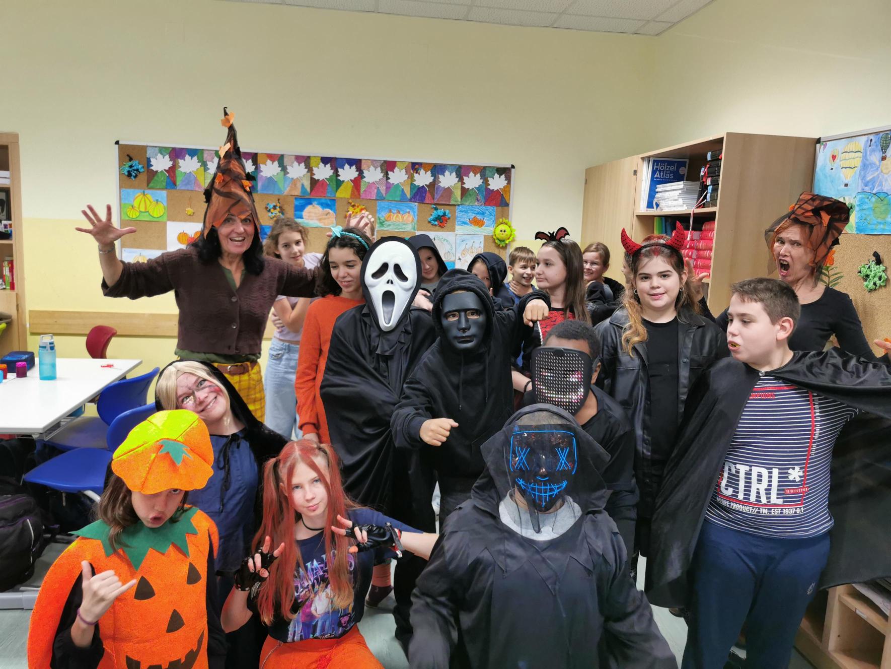 Im Rahmen des Englischunterrichts verbrachten die Schüler:innen der 2c am 24.10.25 mit ihren beiden Lehrerinnen eine lustige Halloweenstunde.